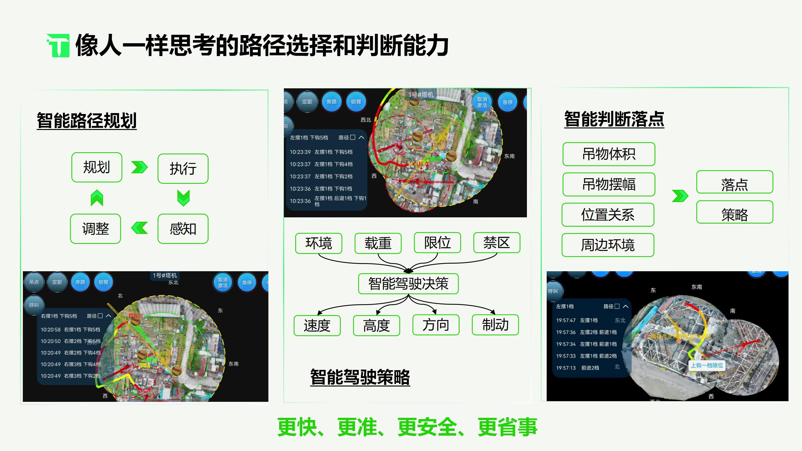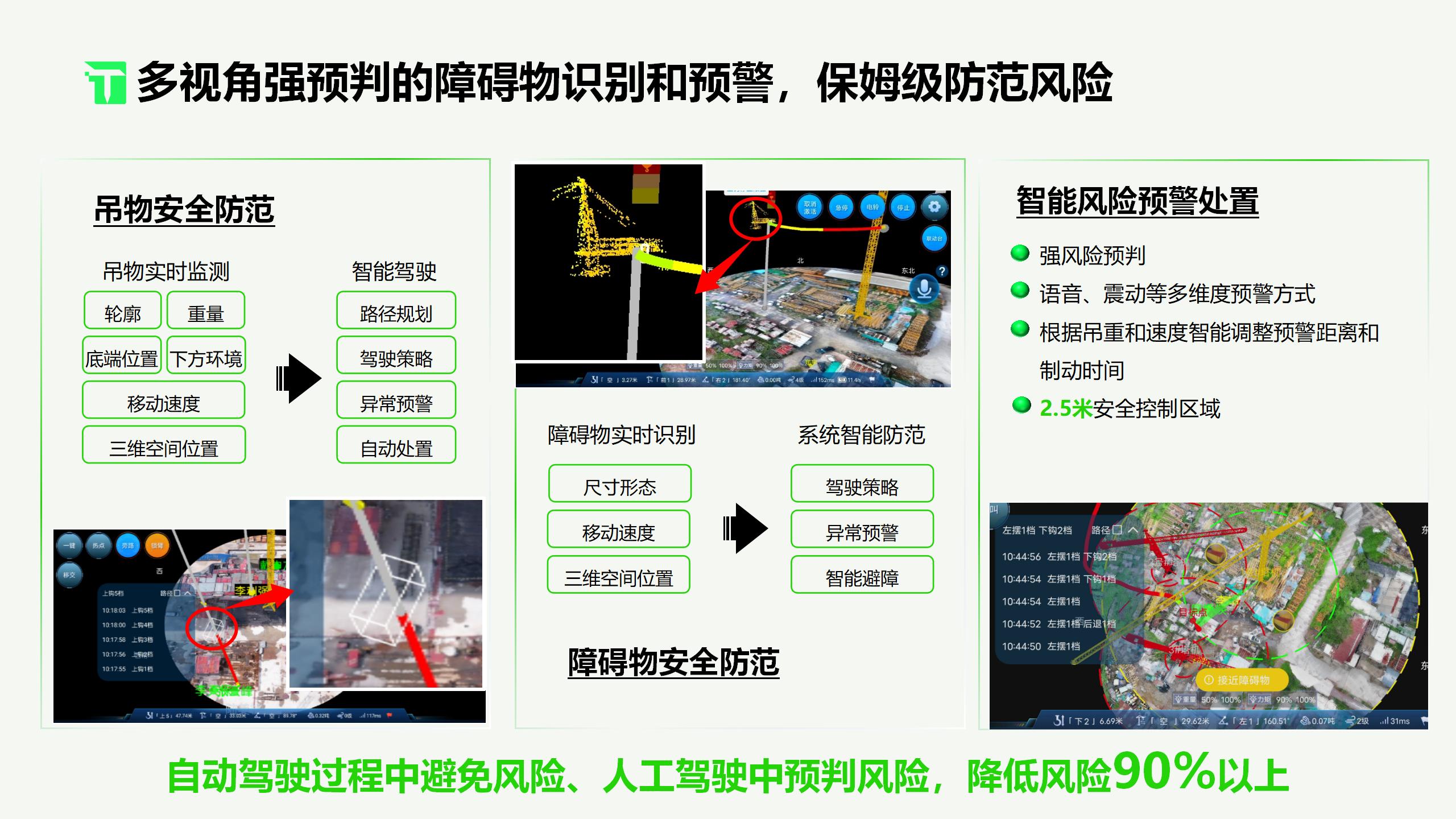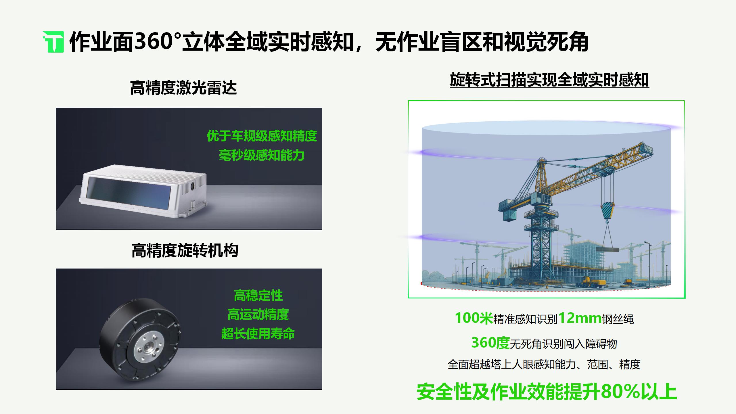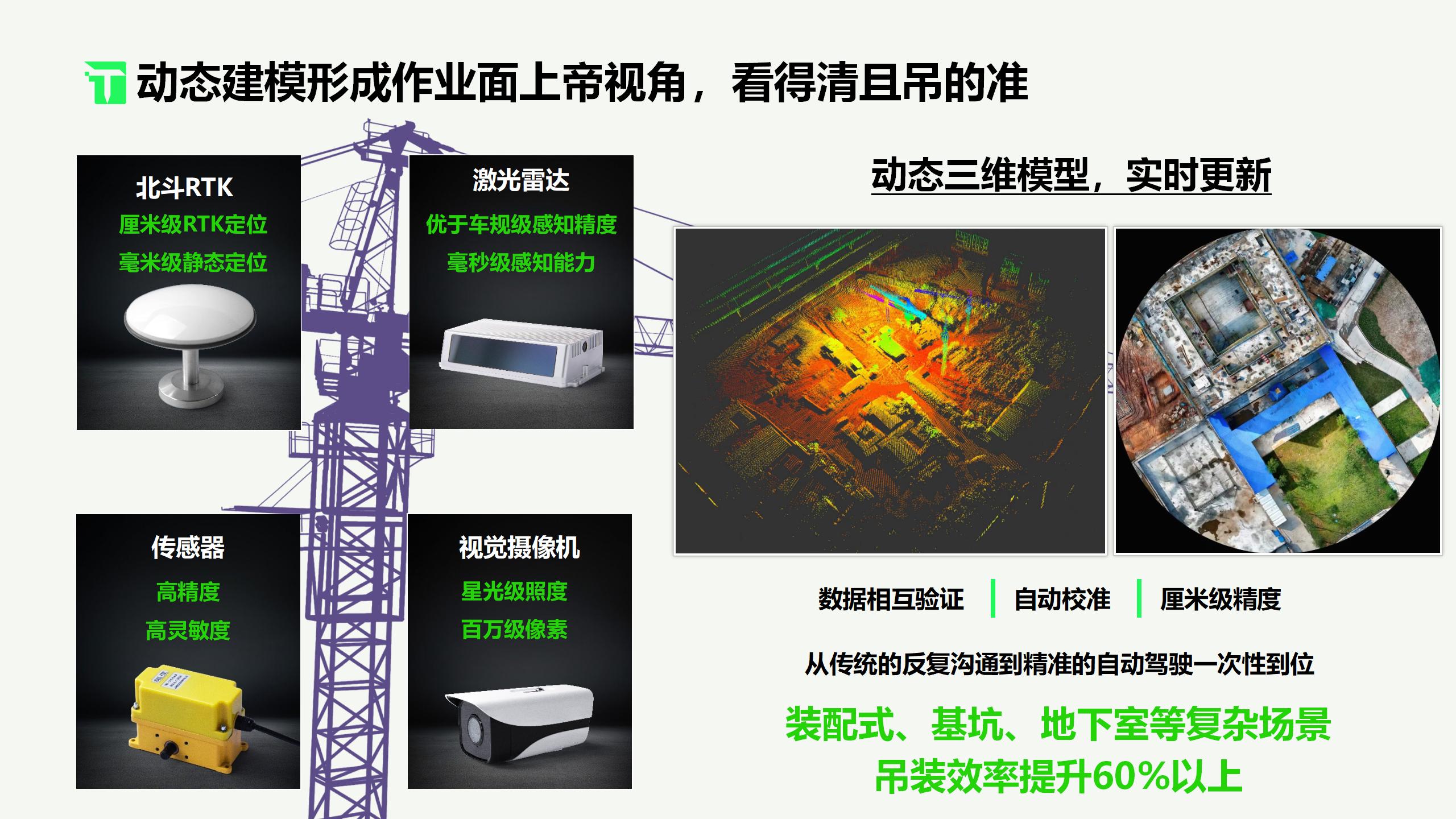 騰暉智能塔機操控系統(tǒng)是騰暉科技自主研發(fā)的塔吊無人駕駛產(chǎn)品。通過 AI 邊緣計算中心、專研塔式起重機連接器以及專研激光雷達等多重融合感知系統(tǒng),讓塔吊成為具有大腦、手腳和眼睛的智能機器人,具備自動駕駛、自動建模、自主路徑規(guī)劃、自主避險等智能功能,實現(xiàn)塔吊作業(yè)無人化,真正做到安全可控、簡單易用和降本增效。